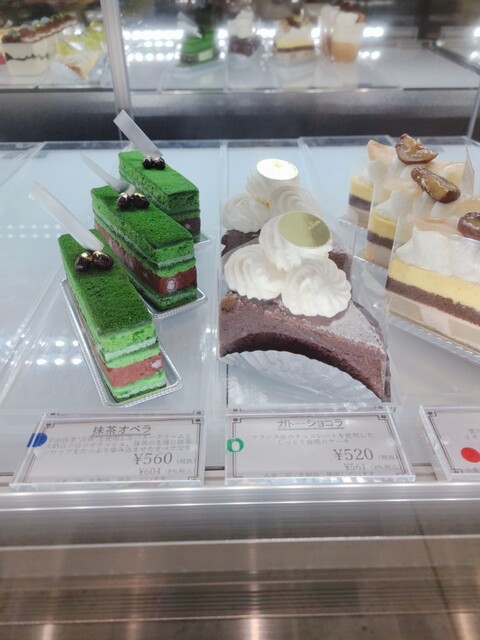 ガラスケースの中にたくさんのケーキが並んでいて、その隣にカフェが併設されていました。