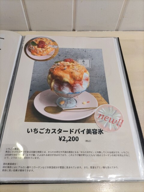 2杯目イチゴカスタードパイ。大のカスタード好きの私はこれがお目当て♪超絶品のカスタード\(^o^)/これぞ私が求めるカスタードそのもの!クオリティはパティシエレベルです。惜しみなくかけられ器の下まで垂れたカスタードも…スプーンですくって食べちゃう(笑)中にもたっぷり入って太っ腹~!パイのサクサクと最高に合うし、もうこんなおいしいカスタードのかき氷なんて人生初めて(((o(*゚∀゚*)o)))イチコロです!!