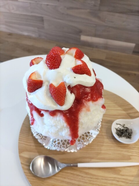 それは素敵な出会いでした。紀北町にかき氷メインのカフェがオープンしたと知って行って来ました。かき氷は一年中販売、日乃出製氷さんの大和氷室、72時間かけて凍らせた純氷を使用しています・・・まずこれ知った時に驚きました!奈良の人気氷専門店と全く同じだからです。紀北町でこれを実現するとは素晴らしいです。かき氷好きのご夫妻が開業されたと言うだけあり、細部までとことんこだわっておられます。シロップはもちろん全て自家製で、練乳ものえる特製練乳。クイーンアンと言うイギリスの銀食器でスプーンにもこだわりがあるそう。
