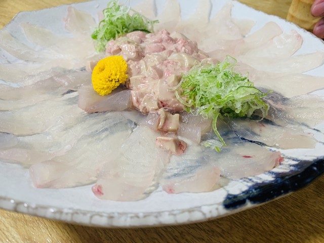 ヒラメのお造りは大きくてえんがわはもちろん美味ですが、尻尾の方と頭の方で弾力も味も違って面白かったです。フグの唐揚げもサクサクカリカリで中身はふわっふわでちょうど良い塩味。牡蠣は焼きでいただきましたが間違いない。大好物の白子ぽん酢はあと4皿は食べれた。エビフライも身がブリブリで満足度高すぎます。