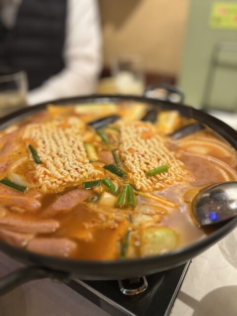 いつも人数多めで行くけどこの日は2人だったので一品ちょこちょことプデチゲを頂きました。