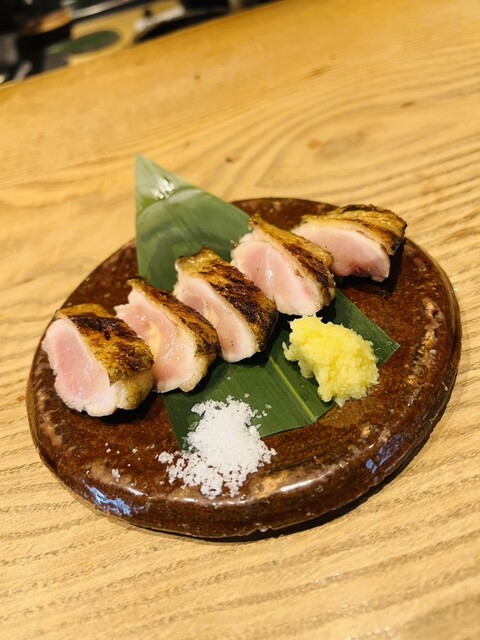 火入れが抜群です、最初に出てくるたたきはほんとに絶品です。皮目はパリッパリやのに中はしっとり柔らか、絶妙です。