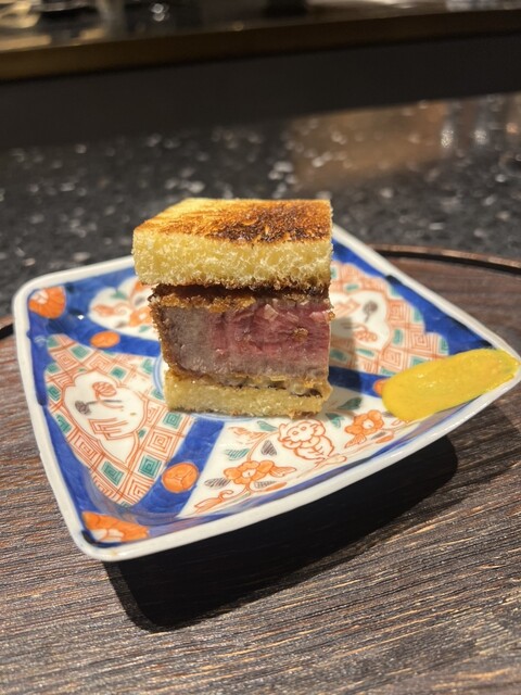 全部もちろん感動しました、特に私は前菜のタン刺しの昆布締めとハンバーグ(白いソースがチーズかと思いきや百合根のソースで和風に仕上げられてて感動)、カツサンドは奈良漬のタルタルとマッチして歯は要りませんでした。すき焼きも一切れしかないのかと食べる前はしょんぼりしていましたが食べて納得、リブロースのすき焼きと奈良の原木椎茸、それと新之助の新米を食べると満足すぎました。美味しすぎた。
