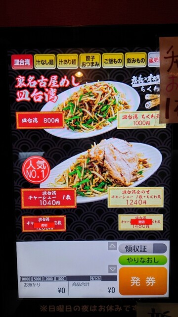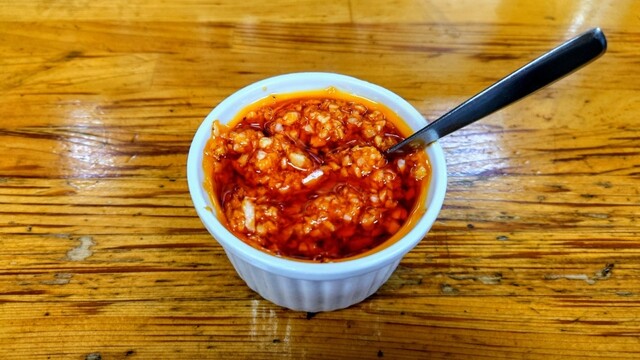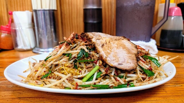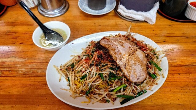 皿台湾チャーシュー1枚(ちょい辛・にんにくOK)+麺大盛り+野菜大盛り