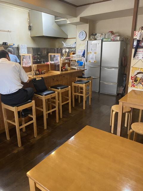 カウンター5席、4人がけテーブルが2つ。