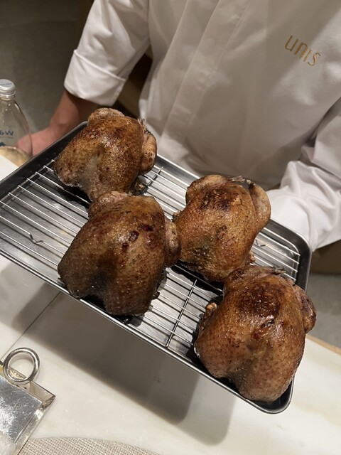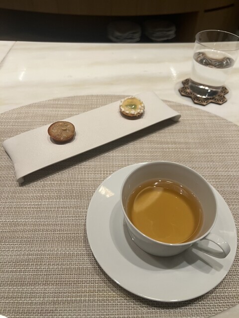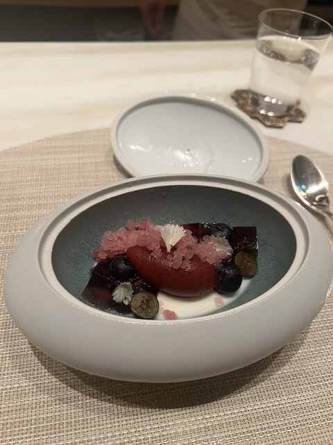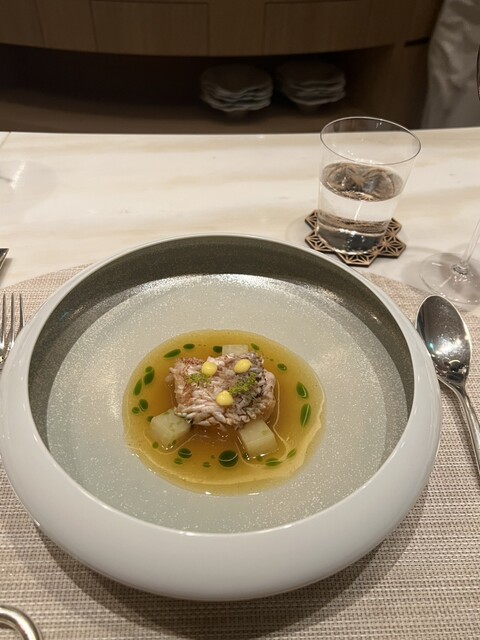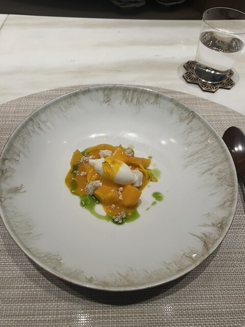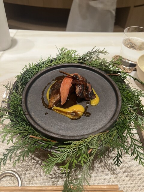 アートのように美しいひと皿ひと皿に感動。苦手だった鳩も、火入れとソースが絶妙で人生初めて美味しくいただけました。ペアリングのお茶や、素材へのこだわりも素晴らしく、最後のデザートまで飽きずに楽しめました。内装、食器やグラスも洗練されていて、目でも楽しめるコース。またすぐ訪れたくなるレストランです!