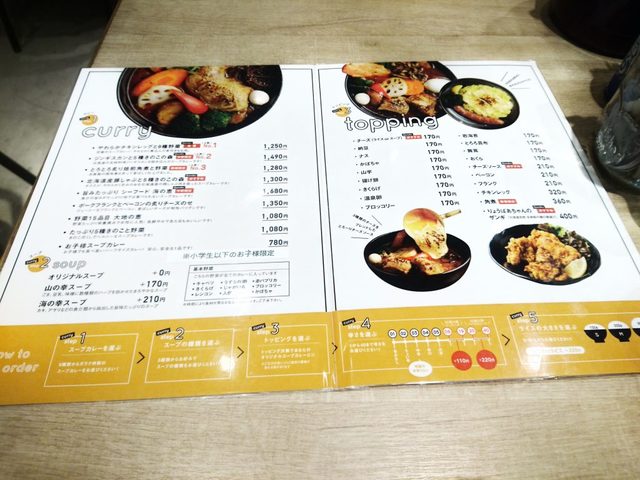 さて、メニューを広げるといろんなスープカレーがあり、どれも興味がわきますが、一番オーソドックスで定番のチキンカレーにしました。