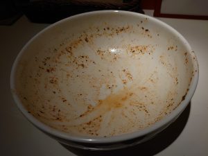 よーく混ぜて、粉をスープになじませてから、まずは一口と、スープを頂きました。