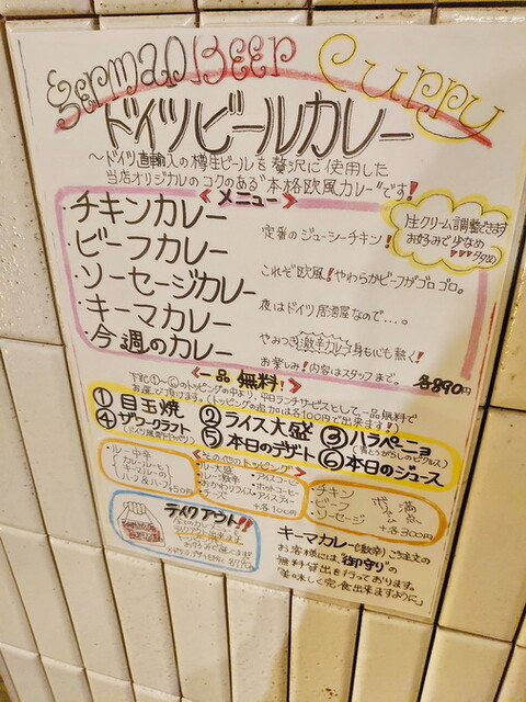 で、お目当てのカレーのメニューは言うと、メニューを別に持って来てくれました。