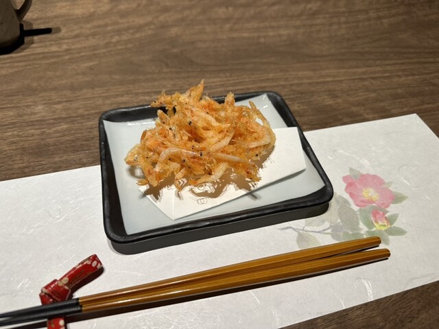 続いては静岡名物桜海老のかき揚げ!これがもう絶品。旬の桜海老を薄目の衣であげてあるので、食感が軽くサクッと揚げてありました!そして一口噛むと桜海老の甘さとジューシーさが溢れて本当に美味い職人の一手間を感じることができる逸品でした!