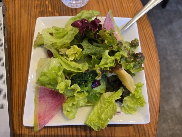 最初にセットのサラダとドリンクが来る。値段の割にしっかりとしたサラダでドレッシングも美味