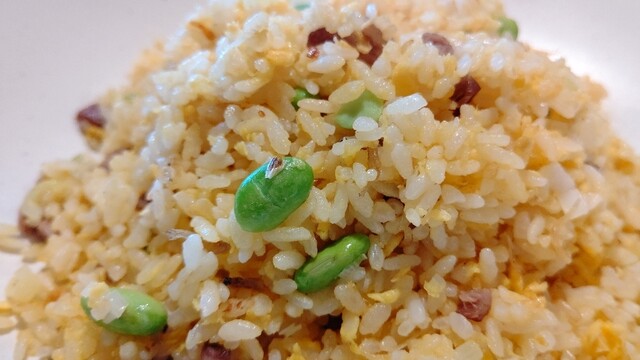 角切りチャーシューも安定の旨味・塩味❗️でアクセントとなって飽きさせないし、枝豆も健在❗️