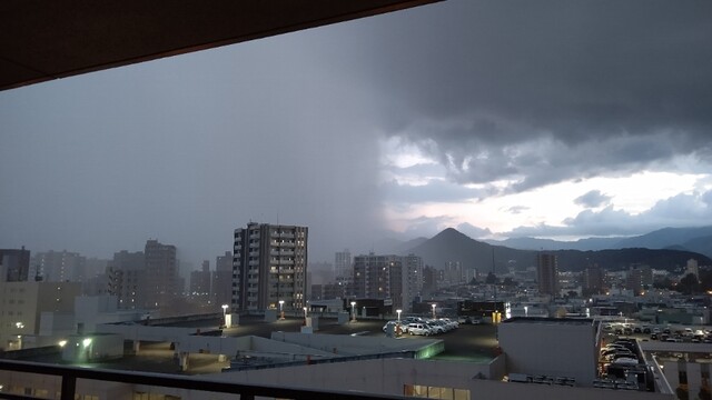 ベランダから外を見たら、南の方から「大雨のカーテン」が近付いて来てましたのでパチリと。