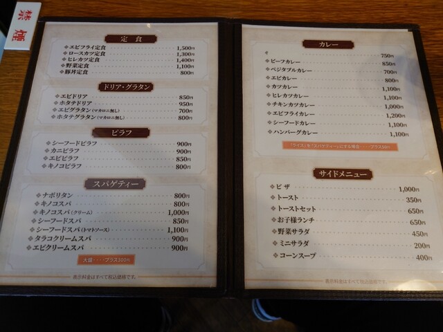 メニュー② 諸色高騰の中、人気洋食店なのに?人気洋食店だから?立地が郊外の住宅街だから「割りとリーズナブル❗良心的❗」なんですね。こりゃあ嬉しいよね。