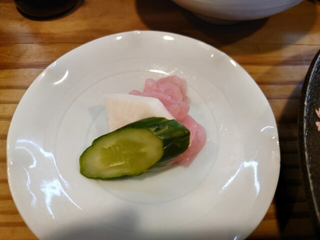 ぬか漬け(胡瓜/蕪)と桜漬け(大根)。やや酸味が出ていたかな。