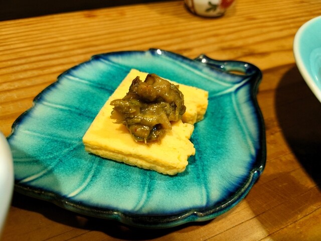 「ふきのとう」他の味噌和え(塩味やや強め)を載せた玉子焼き。「ふきのとう」の仄かな苦味が「春」ですねぇ。