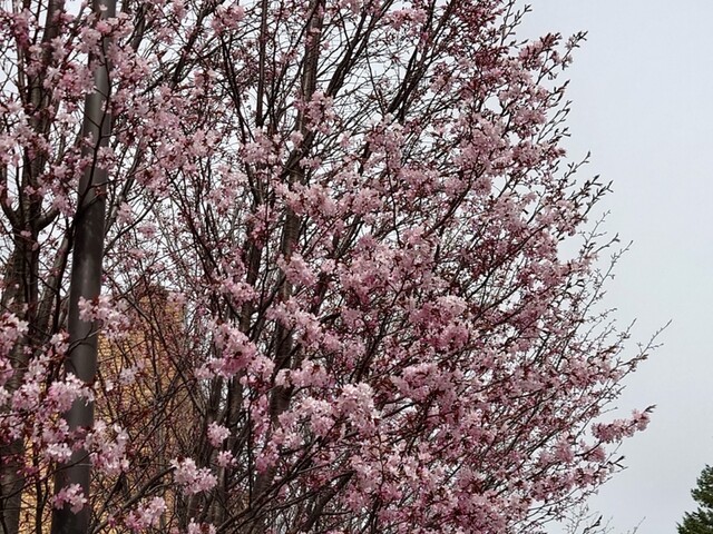 お店〜街中に向かう途中の桜② エゾヤマザクラは、こんな感じで咲きます。