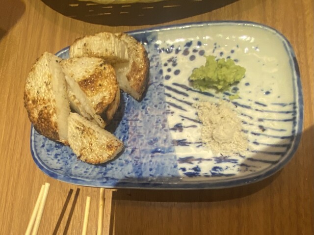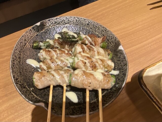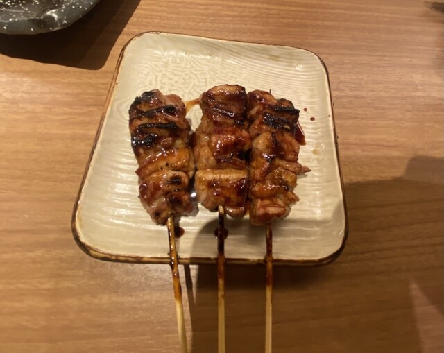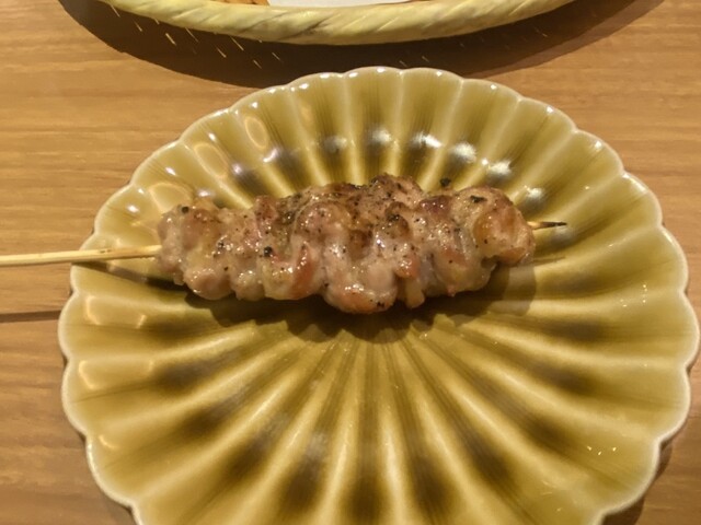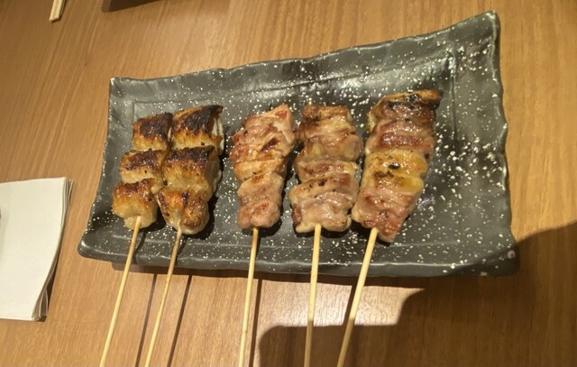 中々ボトル(ソーダ割りセット)、ねぎま(タレ、塩)、モモ(タレ、塩)、つくね卵黄、やげんなんこつ、手羽先(タレ、塩)、せせり、うずらの卵、アスパラ豚巻き、万願寺とうがらし、山芋、椎茸、雛鳥唐揚げ、怒涛のせせり(お店のお気持ち)。