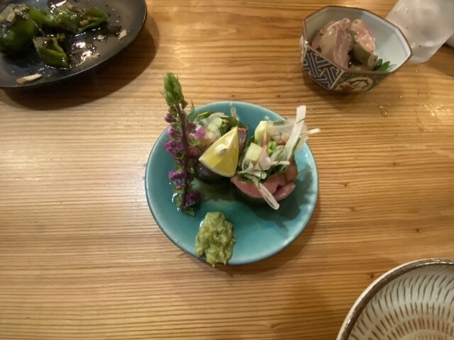 だいやめソーダ、シャキシャキピーマン、手羽揚げ。