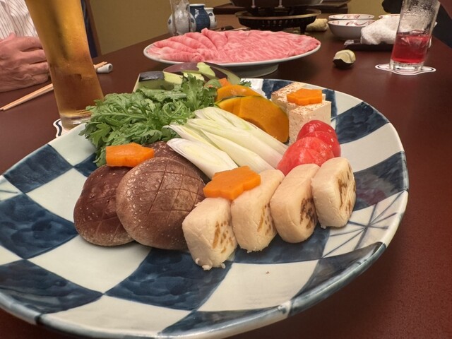 しっかりと食べ応えのあるお肉や野菜、お麩、豆腐などを美しい盛り付けでひとりずつサーブしてくれます。火の通し具合も最高!かぼちゃとか感動ものでした。
