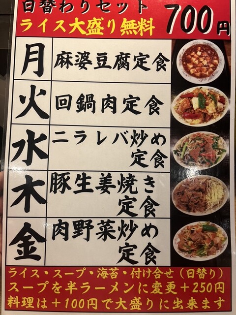 日替わりランチはご飯、スープ、日替わり付け合わせ(本日は冷奴)、海苔がついて700円という超絶激安プライス!!餃子もモチモチ皮と中の餡がベストマッチ!生ビールは…優勝です笑