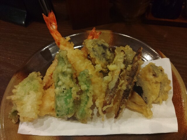 天ぷら盛りは海老に野菜6種盛りの組み合わせで揚げ具合もバッチリ❗素材もよくたまりません