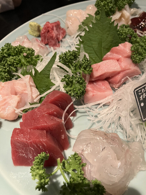 刺し盛りは種類が多く、中でも大間近海のマグロの大トロは美味しかったです