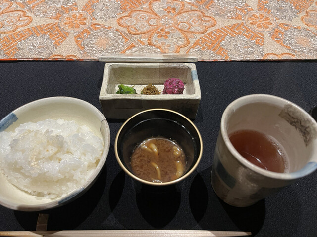 釜焚きご飯。炊き上がってから少し時間あるなぁと思っていたら、なんとアルデンテだったとかで焚き直してくれたという説明がありました!こちらもサービス!すごい