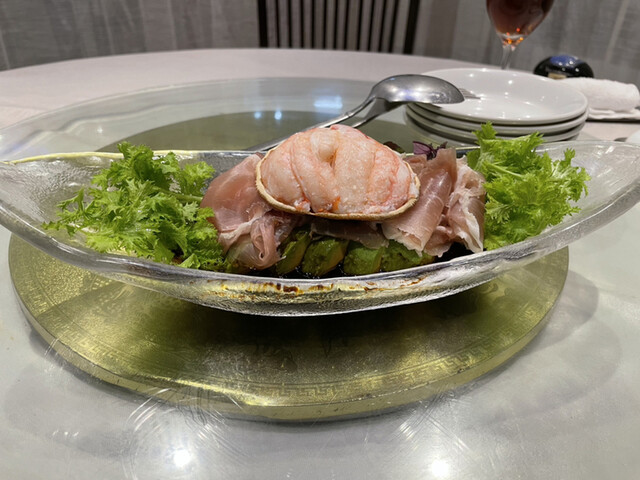 次も前菜枠でアボカド・蟹・生ハムの香港醤油ソース。