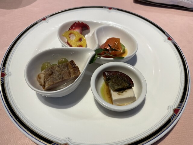 フカヒレランチの前菜。微妙に品が変更されてて飽きのこないように工夫してる料理長に感謝