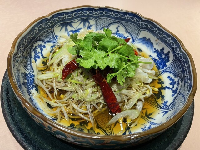 そして最後の前菜にハチノス牛肉の痺れ麻辣ソースをチョイス。絶妙な歯応えのハチノス、そして後からジワジワとくる麻辣の刺激、カシューナッツのザクザク感。ナイスコンビネーション!ワールドカップスペイン戦で見せた三笘と田中のシュートを再現しとるわ。知らんけど