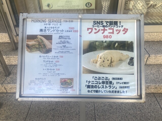 旅行先でモーニングがある喫茶店を探して行き着きました。コーヒー味のパンナコッタ。大変美味しゅうございましたが、どこから食べて良いのやら、迷いに迷い、ブルドッグのワガママボディを崩すように頂きました。あ、普通にフレンチトーストも美味しく、味だけでも及第点です。ご馳走様でした。近くにあったらまた寄ります。