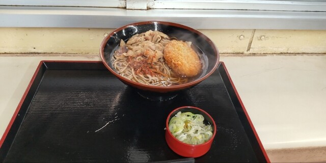 高崎線のステンレスボデーに反射した朝日が眩しいこの日、肉そば+生玉子にミニカレー+コロッケでおよそ1000円弱の食事。