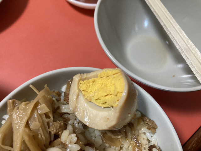 煮玉子、やはり台湾料理の店という事で、当然ながら固茹でであります。クラシックで良いやいね。っていうか、日本でも昭和末期や平成初期の頃までの煮玉子は…群馬県内と一部都内の飲食店でしか食べた事無かったけど、確かみんな固茹でだったような気がしたいねぇ…