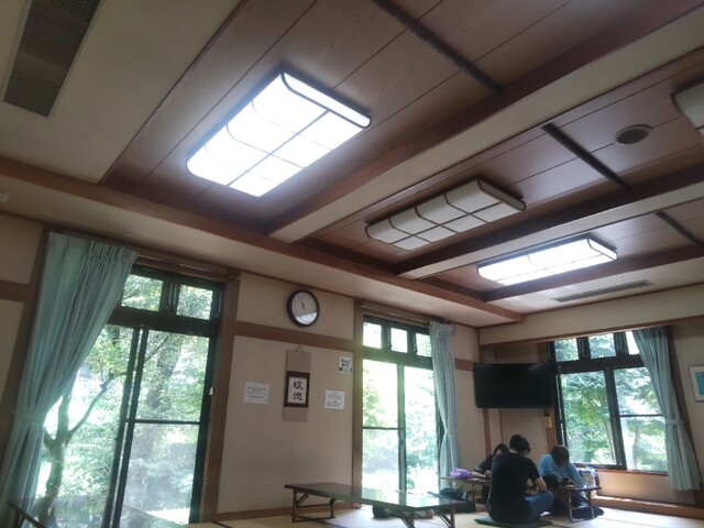 入浴後、座敷席で身体を伸ばし湯冷まし。妻も女湯から座敷席にやって来ます。