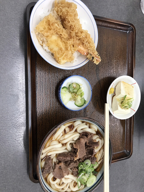 馬肉うどんのセットを注文したら、あっという間に出て来る(2分くらい)。