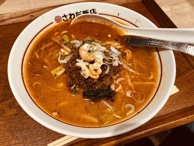 "鯖節担々麺のスープ"を!レンゲで!すくって!お口の中に~!