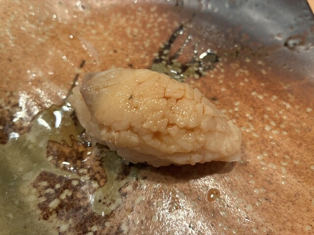 江戸前の部分はありながらも穴子や海老、小肌などのネタは出ず、魚中心に提供されました。ネタは全国から集められており、上質なネタが多く、コスパはかなり高いように感じました。シャリは小ぶりで赤酢がほんのりと香りましたが、主張は強すぎなかったです。