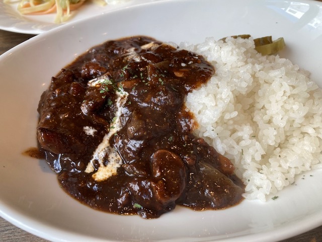 ハンバーグの肉の強い酸味はなんなんだろう・・・全く口に合わなかった。