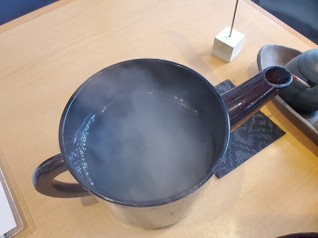 蕎麦を食べ終え、鴨ロース丼を食べていると熱々の蕎麦湯を出してくれました。