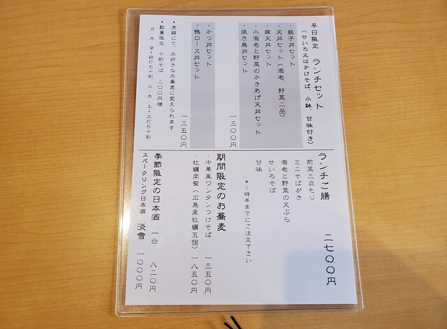 「二八せいろそば・かけ」が750円(税込)からあります。