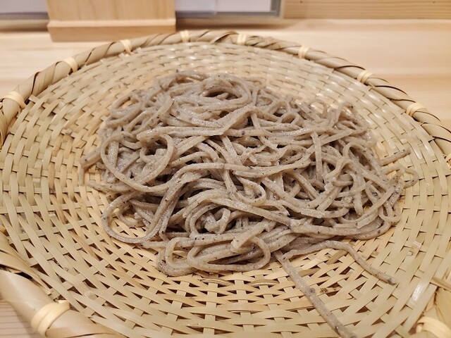 黒っぽい色をした細打ちの粗挽き蕎麦は美しい仕上がりで見るからに美味しそうです!