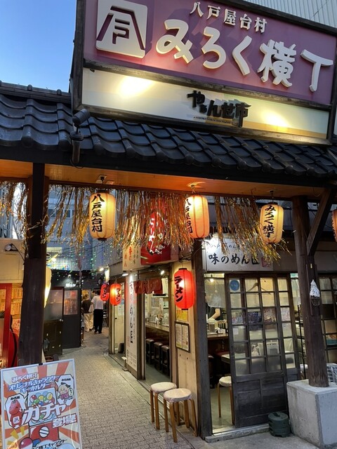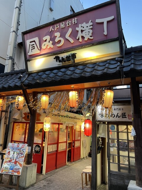 八戸屋台村「みろく横丁」は、中心街に位置する三日町と六日町を貫く横丁であることからその名が付けられました。約26店舗の固定屋台がひしめき各店舗で郷土料理や海鮮料理など色々と楽しめます。