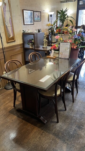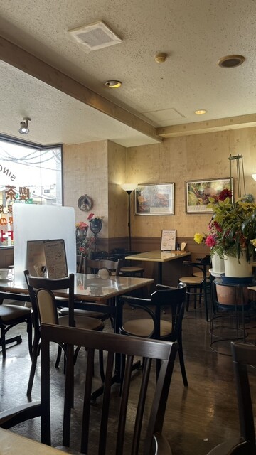 老舗で昔ながらの喫茶店の雰囲気だけど、花が至る所に置いてあり、可愛いらしさもある