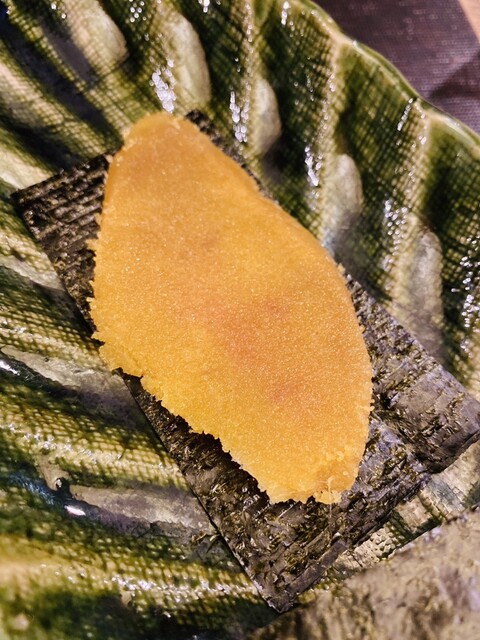 ◉自家製のカラスミを海苔で巻いて