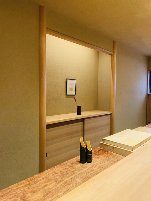 凛とした白木のカウンター席は9席。