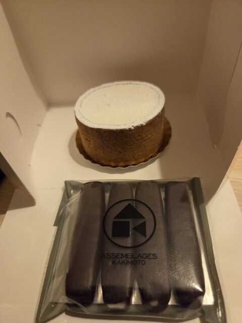 初めて食べるアッサンブラージュ。複数の層を ミルクチョコでコーティングしています。ミルク チョコはやや濃厚な仕上がりですが、中身の層の 中にはマンゴーなどフレッシュな甘味の層も含ま れており、全体的にバランスの整ったケーキでし た。