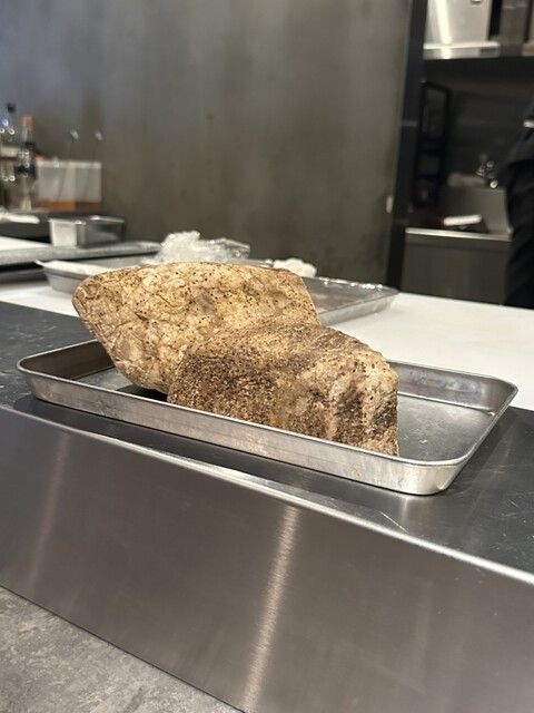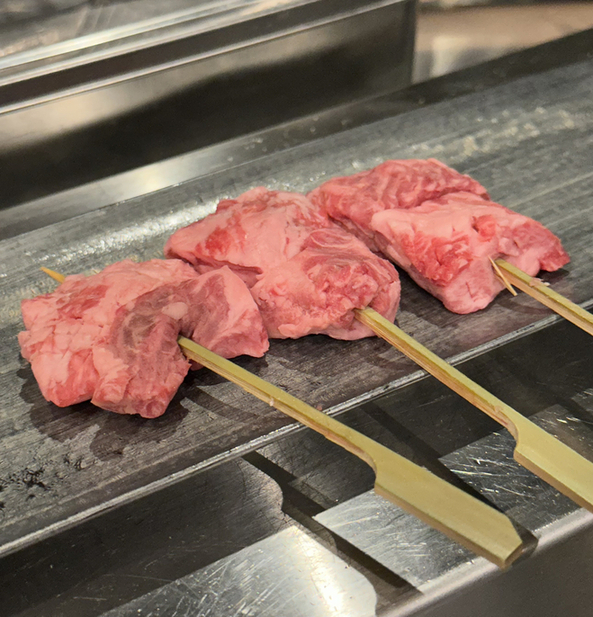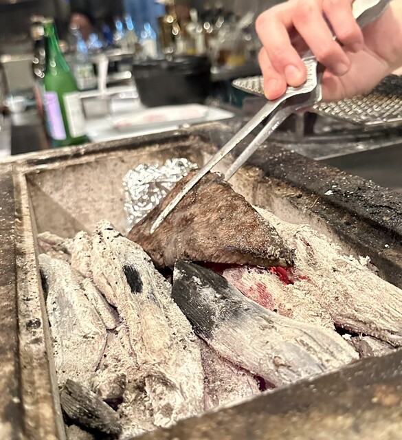 「シンシン」は、炭で直接焼くダーティーステーキ。使われている炭は、生産量日本一の土佐備長炭です。シンシンを炭の上に置くと水分が泡となって肉の表面に出てきます。炭で直接焼き上げた肉は、外は“パリッと”中は“ジューシー”に仕上げられており美味しかったです。