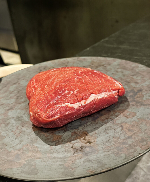 お店名物の炭で直接焼く「ダーティーステーキ」に使われているのは、ウチモモの熟成肉。凝縮された旨味が噛むたびに口のなかに広がる至高の一品でした。