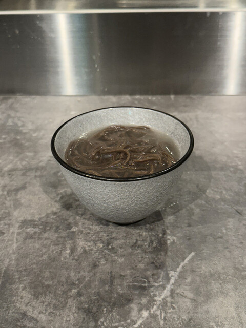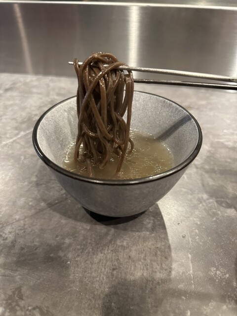 〆の「音威子府そば」は、生産が終了した激レアそば。黒い麺と独特の風味が特徴的で、〆にぴったりです。